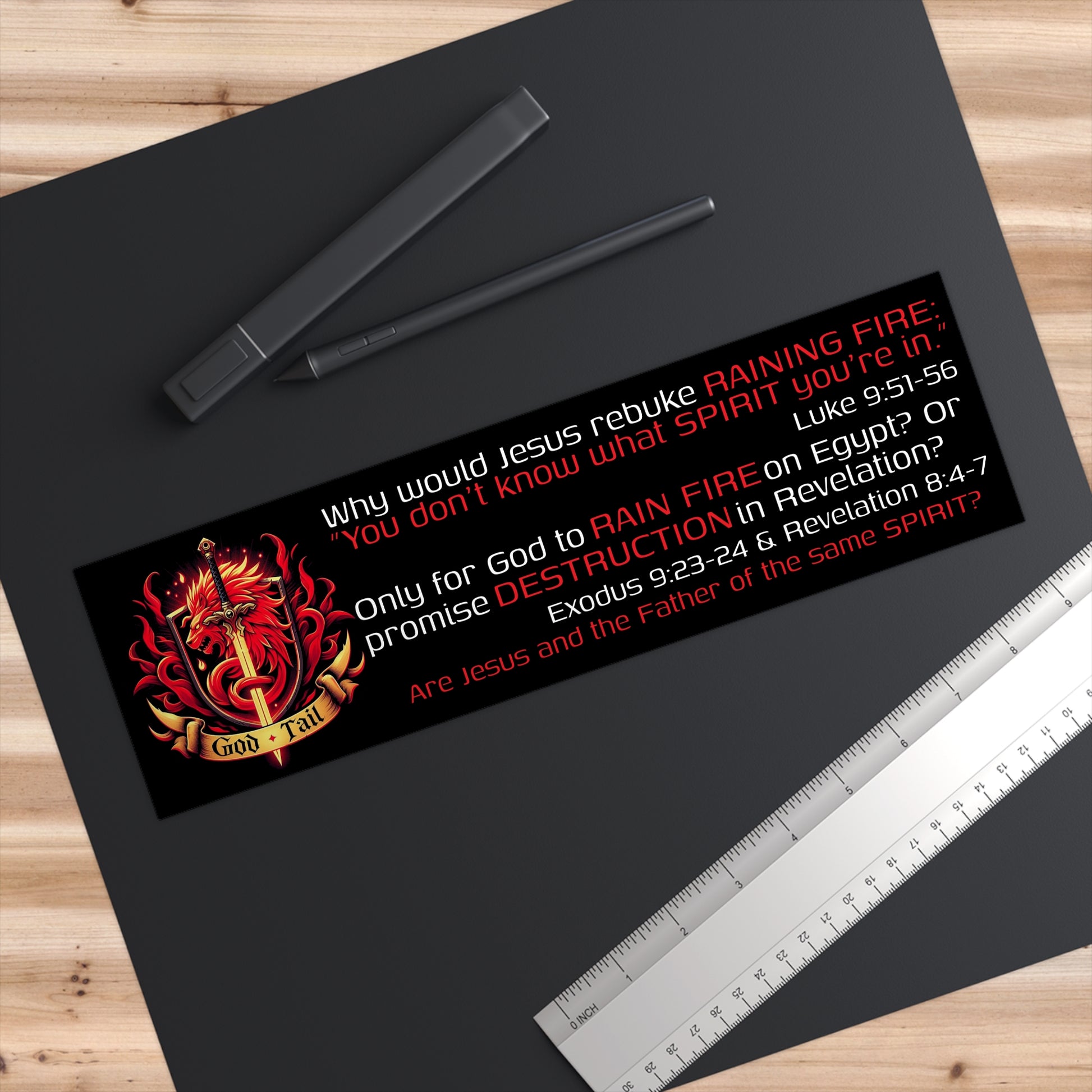 A religious bumper sticker challenging the belief that Jesus and God are of the same spirit. Perfect for those looking to make a bold statement and spark conversation. Ideal for religious skeptics or those questioning traditional beliefs. Relevant for Easter, Christmas, or any religious discussions.