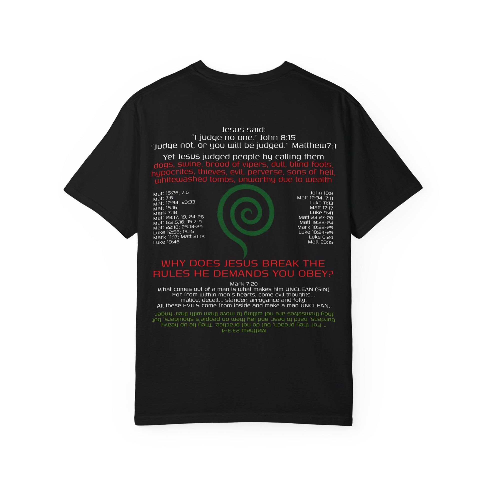 A thought-provoking T-shirt design challenging the idea of not judging others, featuring Jesus instructing people not to judge. Perfect for those who appreciate bold statements and want to spark conversations. Ideal for religious holidays and gatherings.